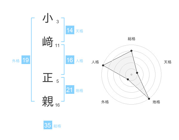 小﨑 正親さんの天格は14画の1点!