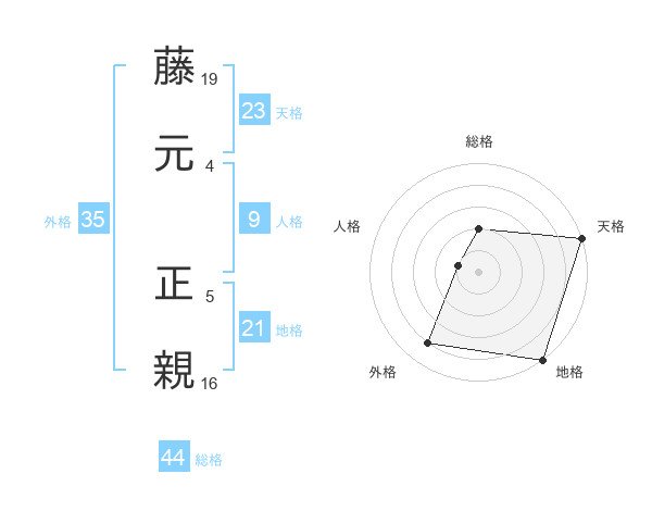藤元 正親さんの天格は23画の5点!