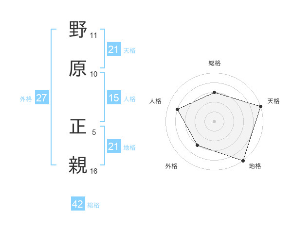 野原 正親さんの地格は21画の5点!