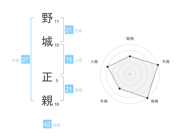 野城 正親さんの地格は21画の5点!