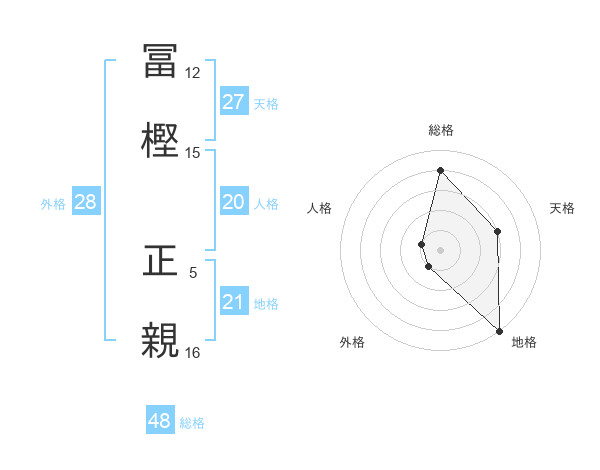 冨樫 正親さんを姓名の画数から五運を鑑定