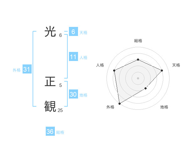 光 正観さんの総格は36画の3点!