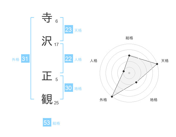 寺沢 正観さんの総格は53画の3点!