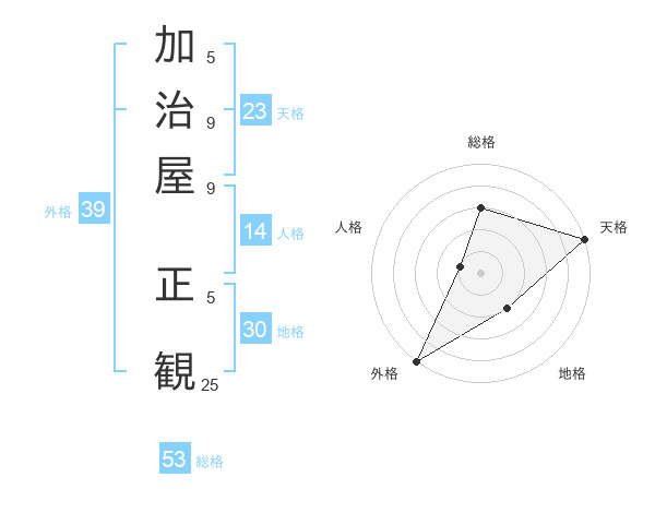 加治屋 正観さんの外格は39画の5点!