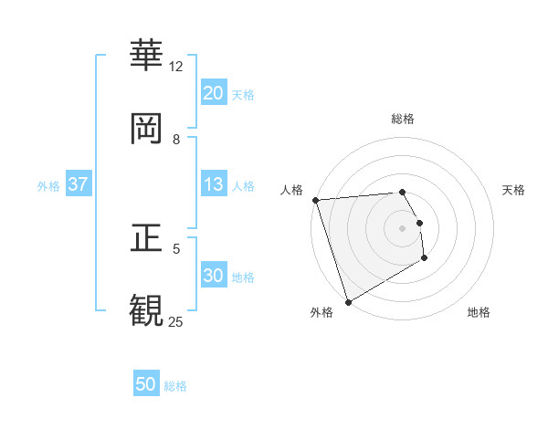 華岡 正観さんの外格は37画の5点!