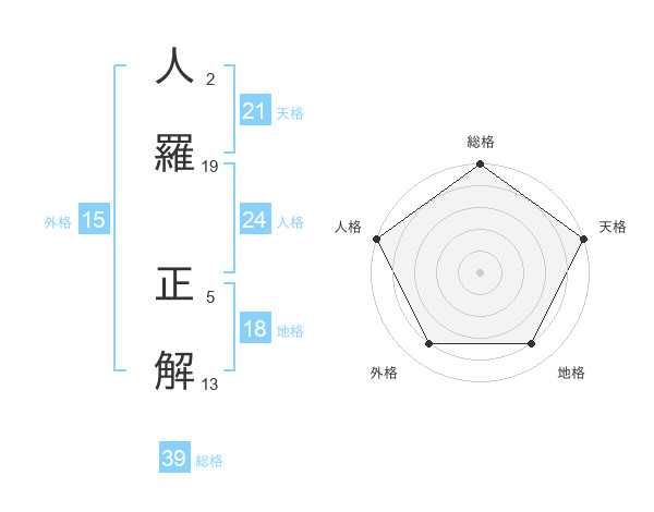人羅 正解さんの総格は39画の5点!