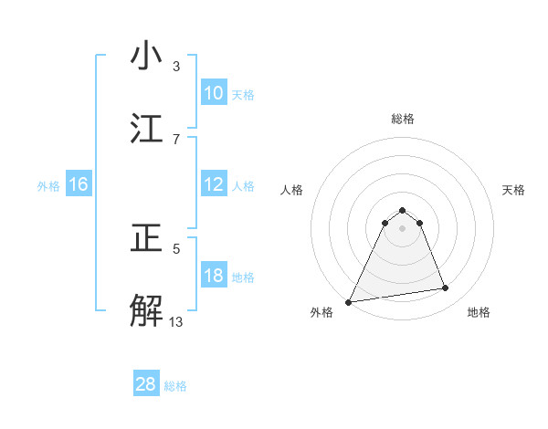 小江 正解さんの外格は16画の5点!
