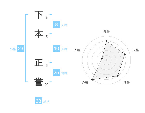 下本 正誉さんの天格は8画の4点!