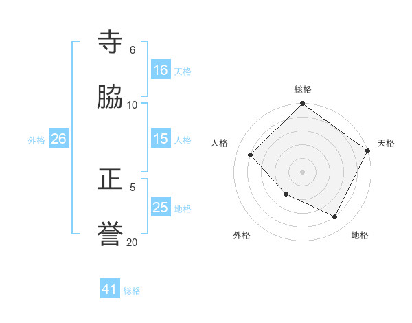 寺脇 正誉さんの総格は41画の5点!