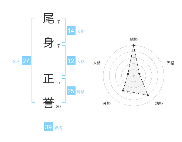 尾身 正誉さんの総格は39画の5点!