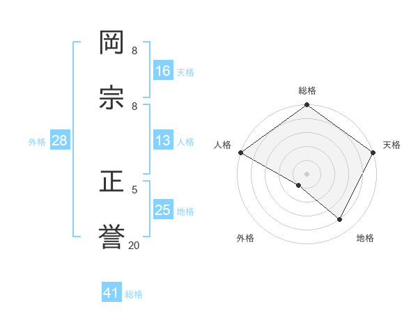 岡宗 正誉さんの天格は16画の5点!