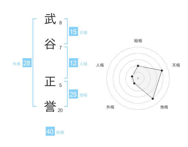 武谷 正誉さんを姓名の画数から五運を鑑定
