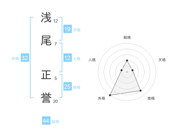 浅尾 正誉さんの天格は19画の1点!