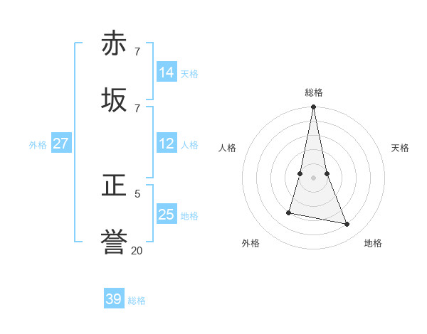 赤坂 正誉さんを姓名の画数から五運を鑑定