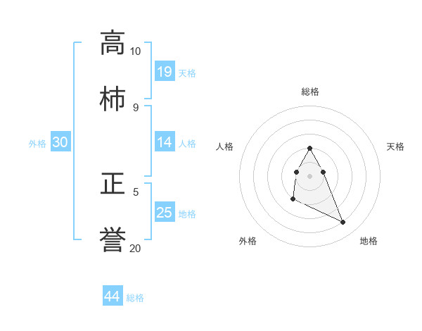 高柿 正誉さんを姓名の画数から五運を鑑定