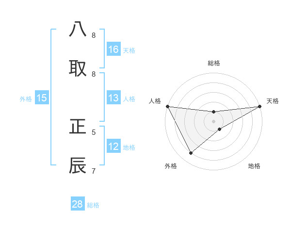八取 正辰さんの天格は16画の5点!
