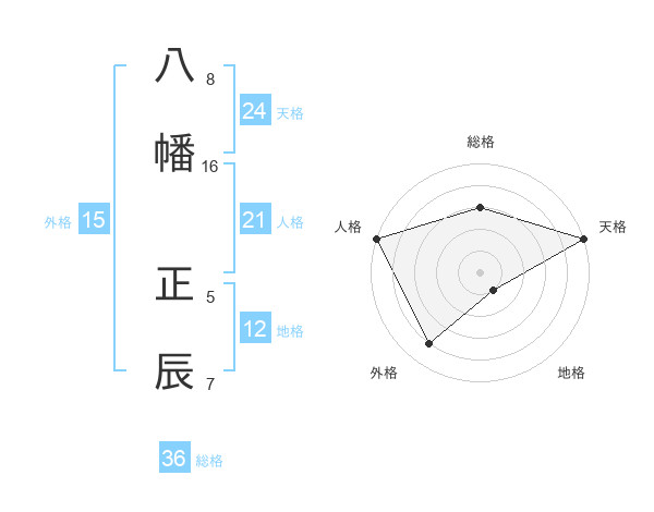 八幡 正辰さんの天格は24画の5点!