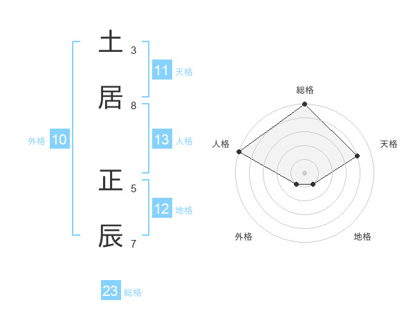 土居 正辰さんの総格は23画の5点!