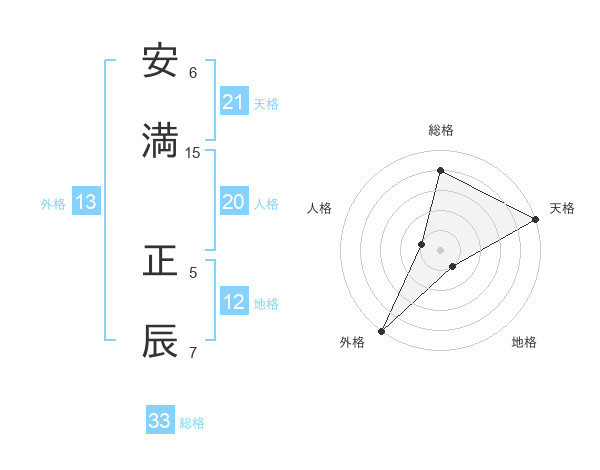 安満 正辰さんの総格は33画の4点!