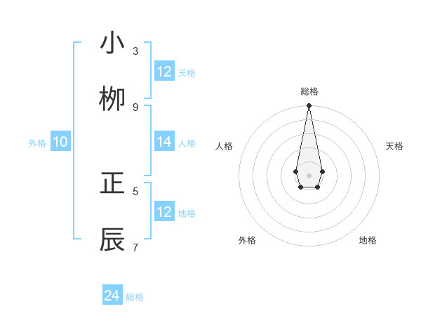 小栁 正辰さんの総格は24画の5点!