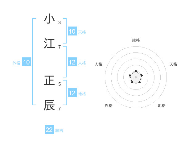 小江 正辰さんの総格は22画の1点!