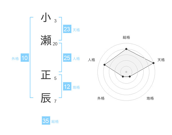 小瀬 正辰さんの総格は35画の4点!