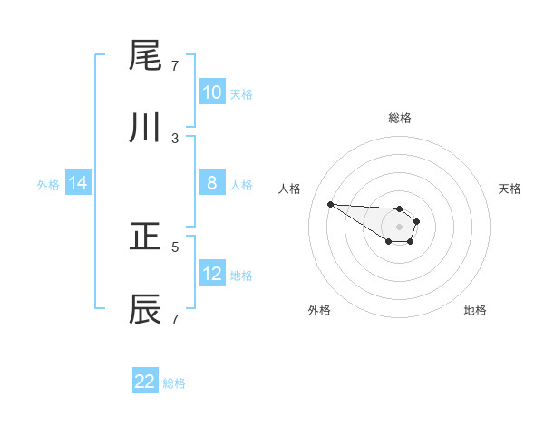 尾川 正辰さんの総格は22画の1点!