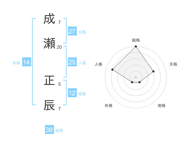 成瀬 正辰さんの総格は39画の5点!