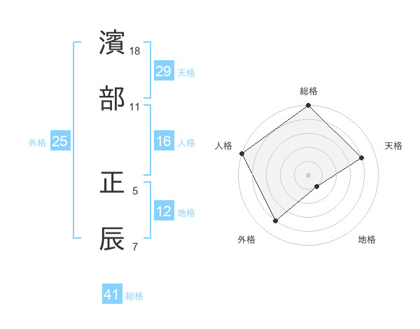 濱部 正辰さんの総格は41画の5点!
