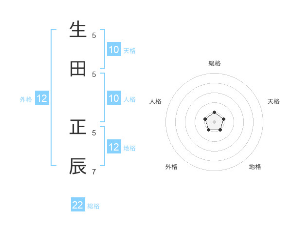 生田 正辰さんの総格は22画の1点!