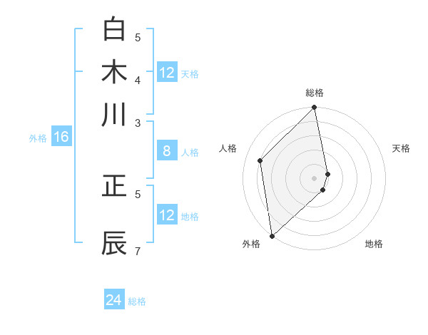 白木川 正辰さんの総格は24画の5点!