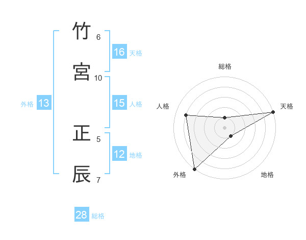 竹宮 正辰さんの外格は13画の5点!