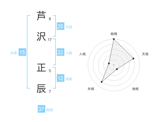 芦沢 正辰さんの総格は37画の5点!