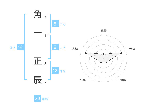 角一 正辰さんの総格は20画の1点!