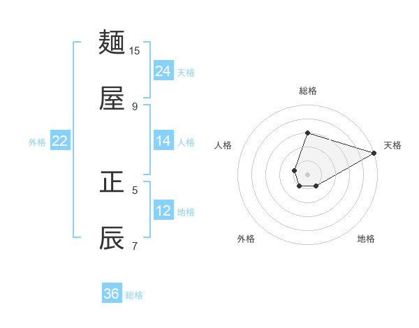 麺屋 正辰さんの天格は24画の5点!