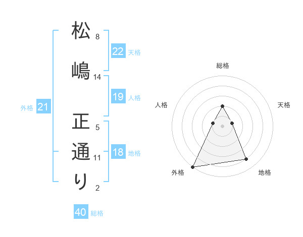 松嶋 正通りさんを姓名の画数から五運を鑑定