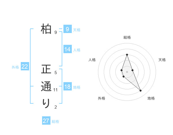 柏 正通りさんの総格は27画の3点!