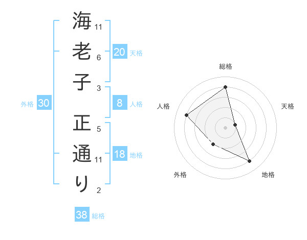 海老子 正通りさんを姓名の画数から五運を鑑定