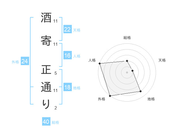 酒寄 正通りさんの天格は22画の1点!