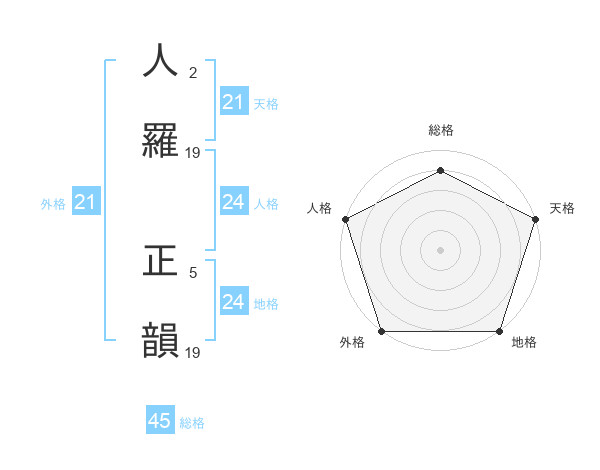 人羅 正韻さんの総格は45画の4点!