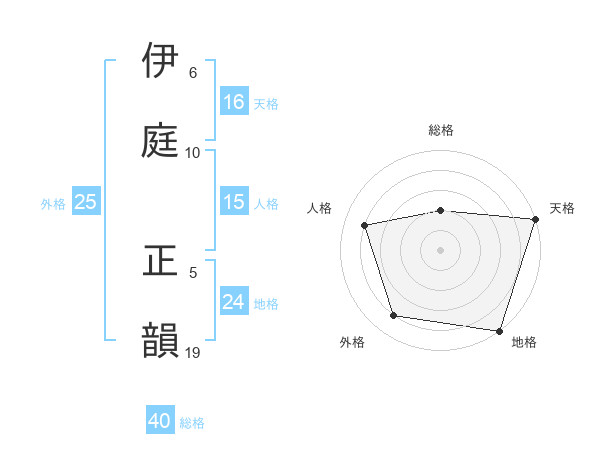 伊庭 正韻さんの天格は16画の5点!