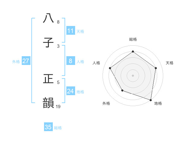 八子 正韻さんの総格は35画の4点!