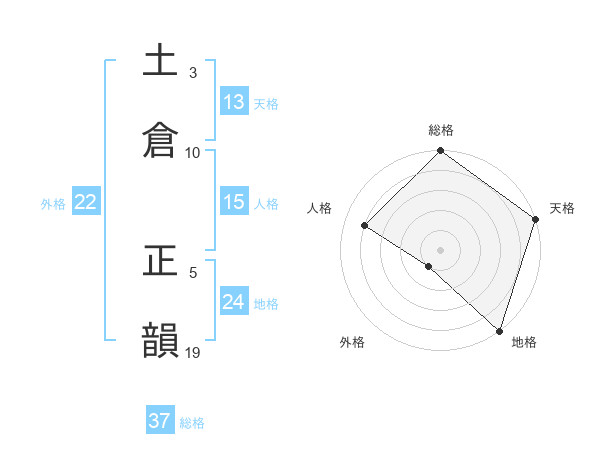 土倉 正韻さんを姓名の画数から五運を鑑定