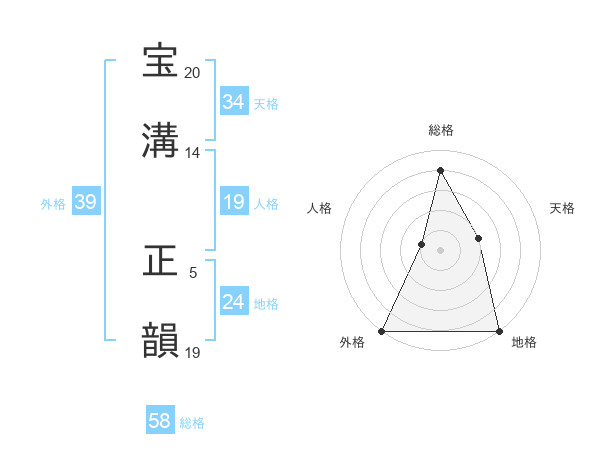 宝溝 正韻さんの総格は58画の4点!