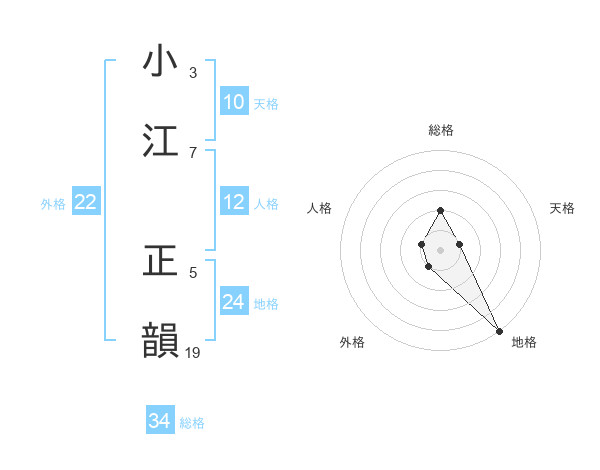 小江 正韻さんの総格は34画の2点!