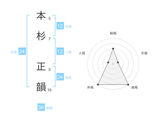 本杉 正韻さんを姓名の画数から五運を鑑定