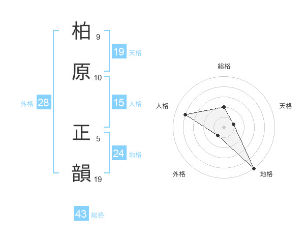 柏原 正韻さんの外格は28画の1点!