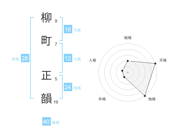 柳町 正韻さんの総格は40画の2点!