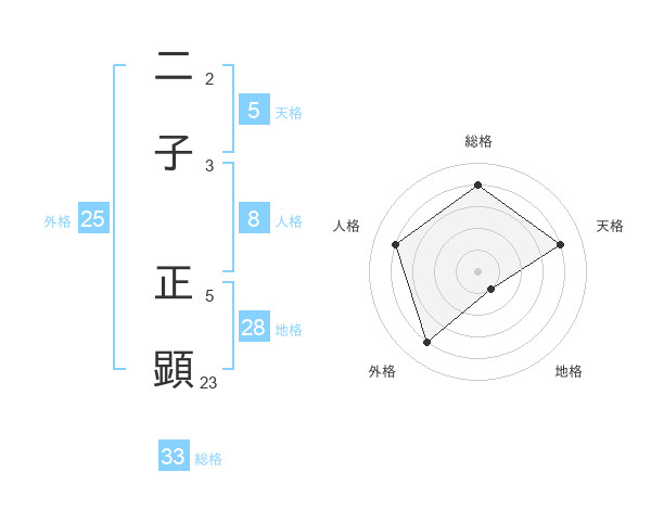二子 正顕さんの天格は5画の4点!