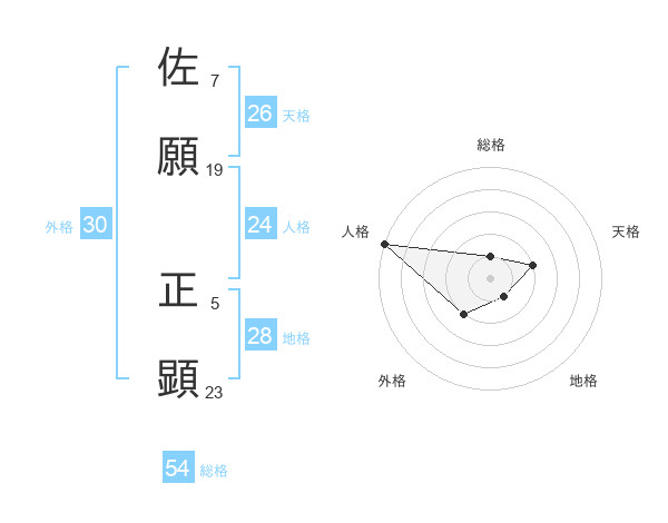 佐願 正顕さんの総格は54画の1点!